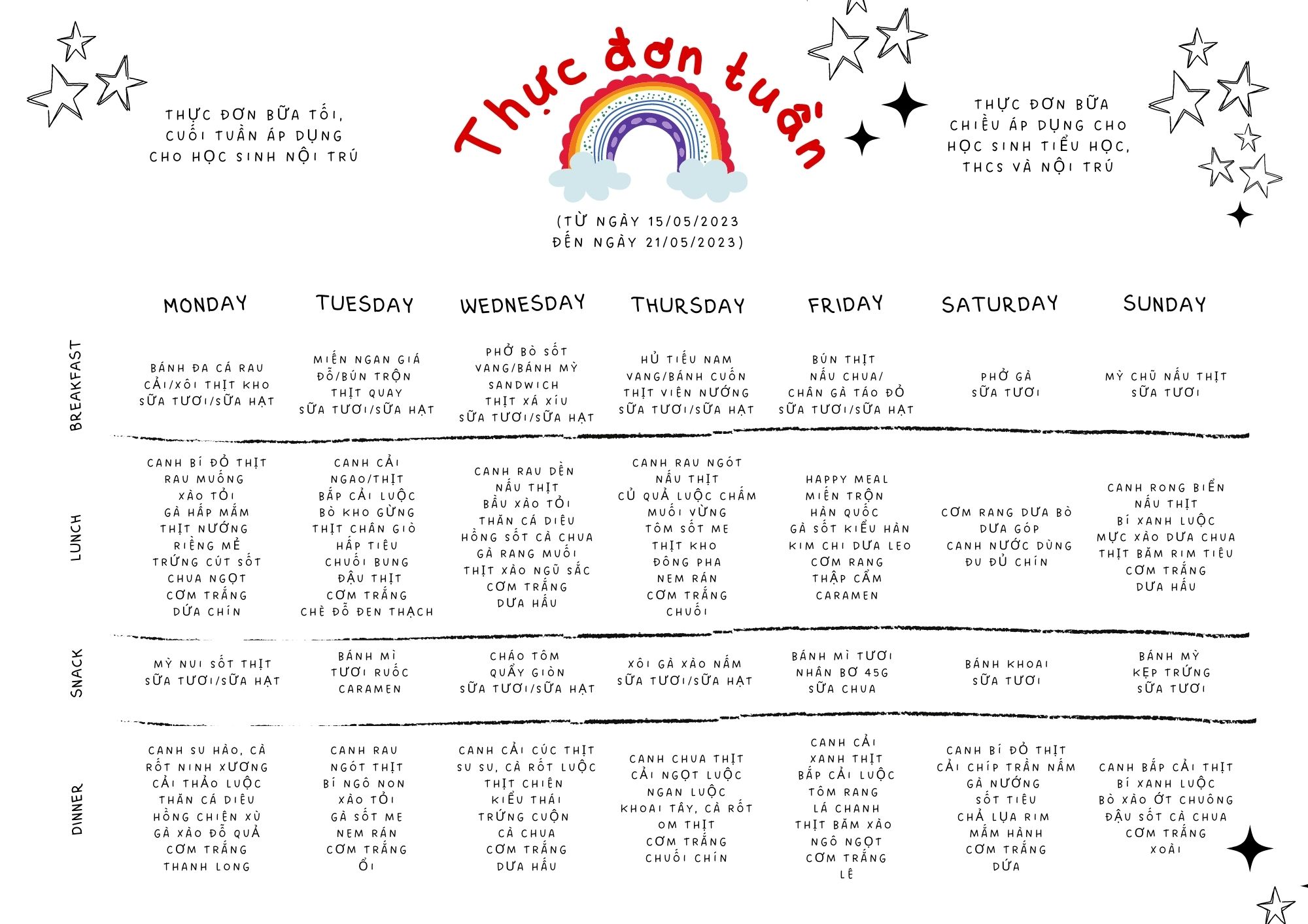 Thực đơn từ ngày 15/05/2023 đến ngày 21/05/2023