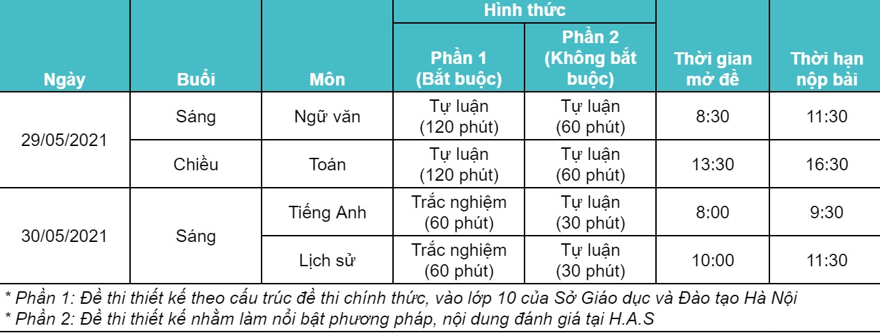 Lịch thi thử online vào 10 tại Hanoi Adelaide School