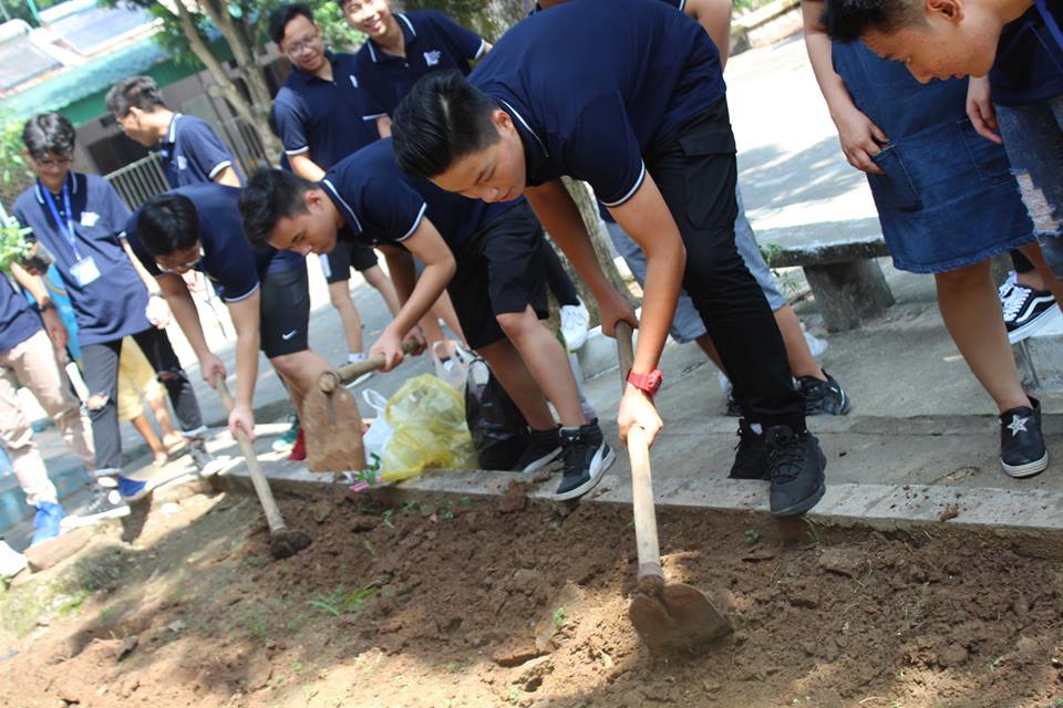 Tập thể học sinh khối 10 đã tận tay chuẩn bị những món quà trung thu, cùng dọn dẹp cảnh quan, trồng cây, trang trí không gian chung sau đó vui chơi với các em nhỏ khuyết tật, thiếu may mắn đang ở trung tâm.