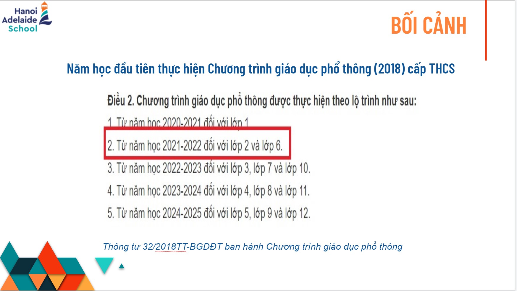 Cô Dương Trang – Phó Hiệu trưởng trường THCS H.A.S đã chia sẻ những thông tin cụ thể về bối cảnh của năm học như sự thay đổi trong việc triển khai sách giáo khoa với khối 6, khung thời gian năm học, một ngày học-tập của học sinh hay lộ trình cá nhân hoá được thực hiện như thế nào tại Hanoi Adelaide School, phương thức liên lạc giữa Gia đình và Nhà trường…