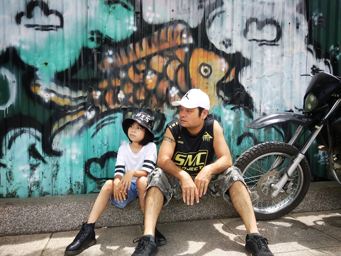 Hà Lâm Trúc cùng bố Tùng.