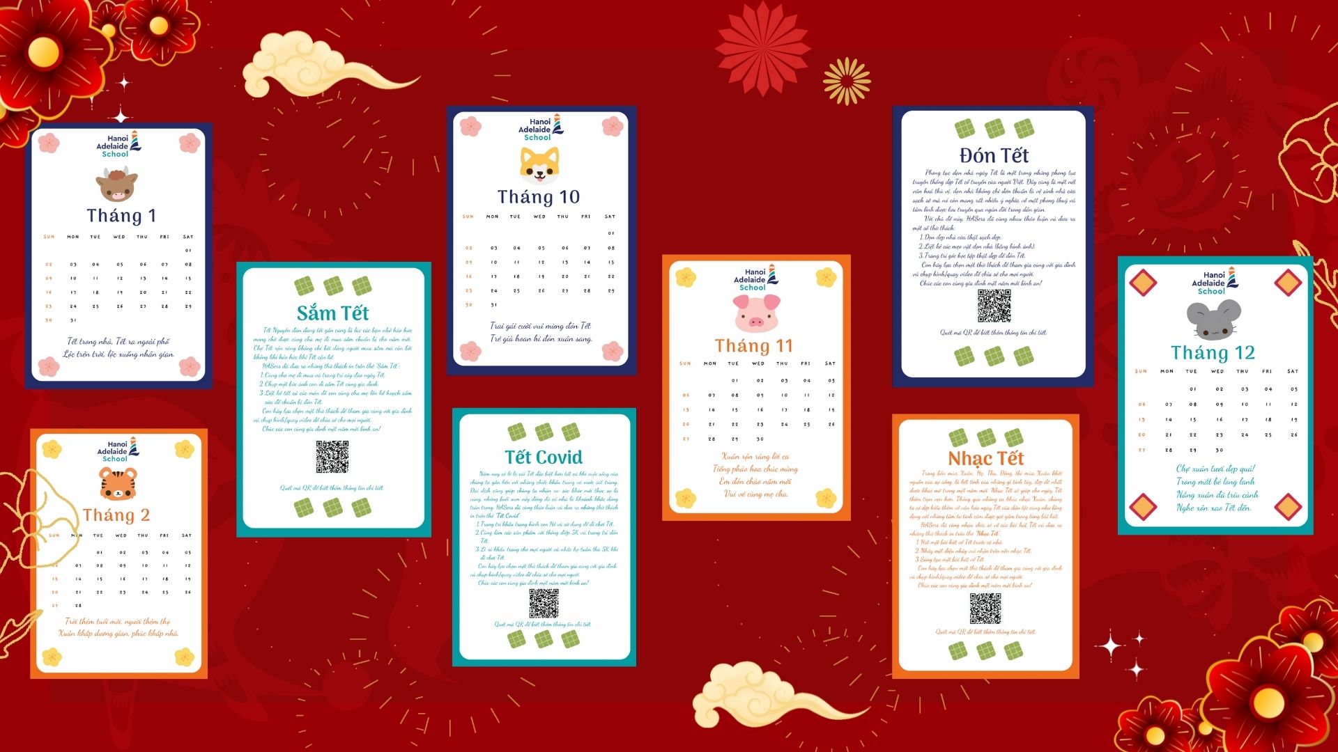 Bộ thẻ “Thử thách đón Tết” do chính học sinh H.A.S thiết kế