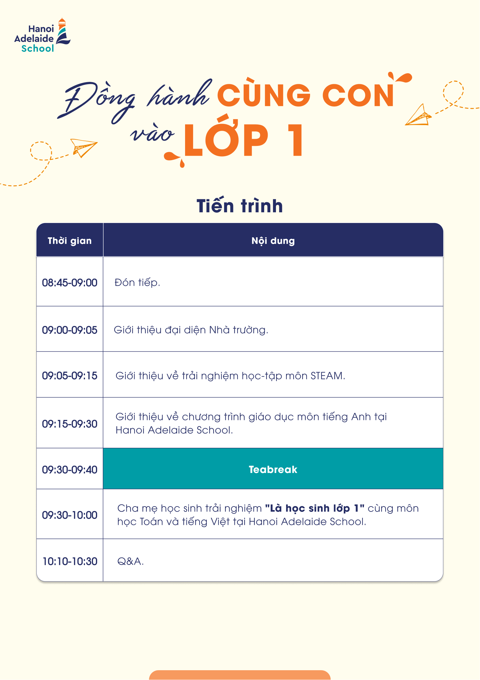 Thấu hiểu điều đó, Hanoi Adelaide School tổ chức Hội thảo “Đồng hành cùng con vào lớp 1”, với những thông tin về: