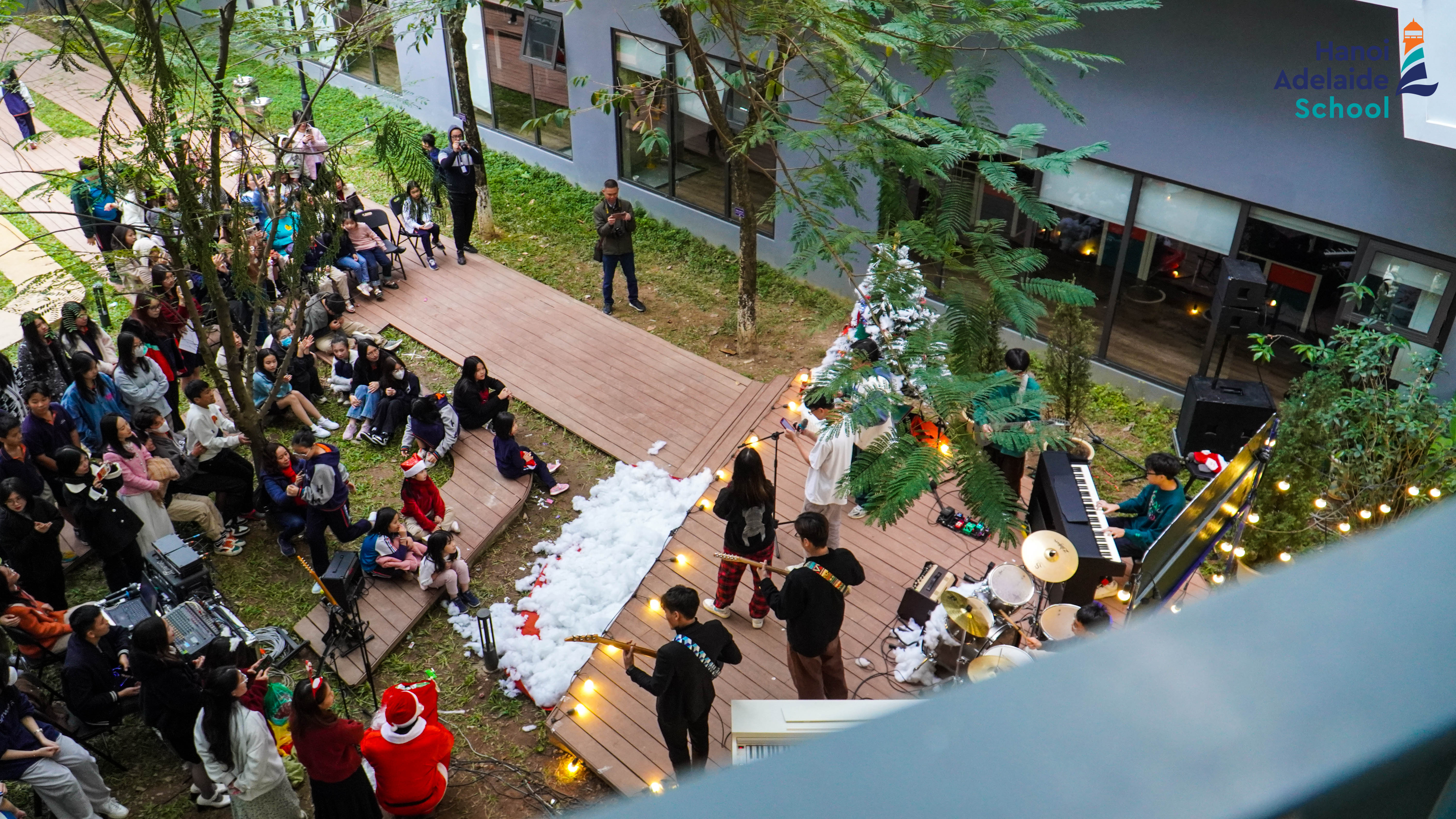 Tất cả đều được gói trọn trong “bữa tiệc âm nhạc” cuối năm mang tên “Acoustic Christmas Concert” của thầy và trò Hanoi Adelaide School cơ sở Dương Nội.
