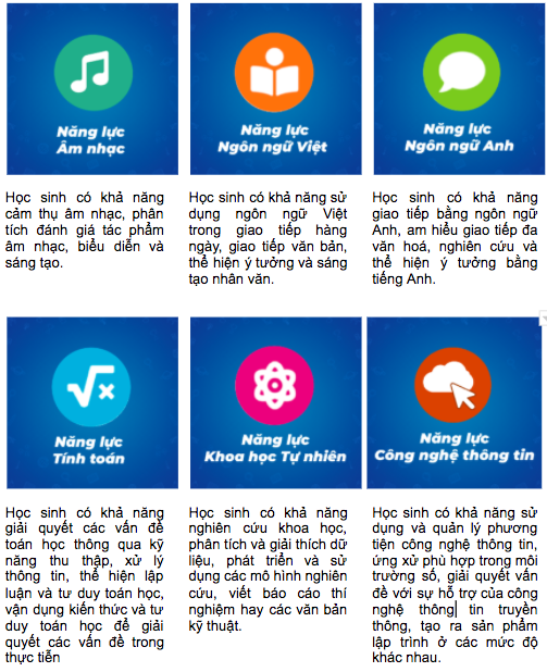 14 năng lực cần hình thành và phát triển cho học sinh tại Trường Phổ thông Liên cấp H.A.S như sau: