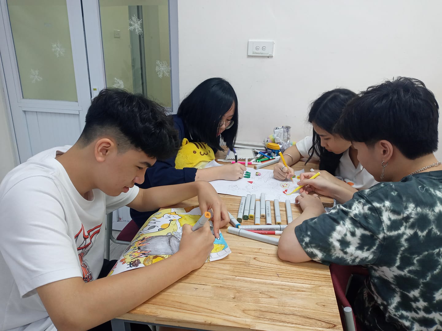 Các hoạt động  như: Thiết kế bìa sách, vẽ chân dung nhân vật, làm báo tường, bookmark, trạm sáng tác: sáng tác thơ, viết truyện ngắn, viết tản mạn… sẽ giúp các con tự do thể hiện năng lực của mình.