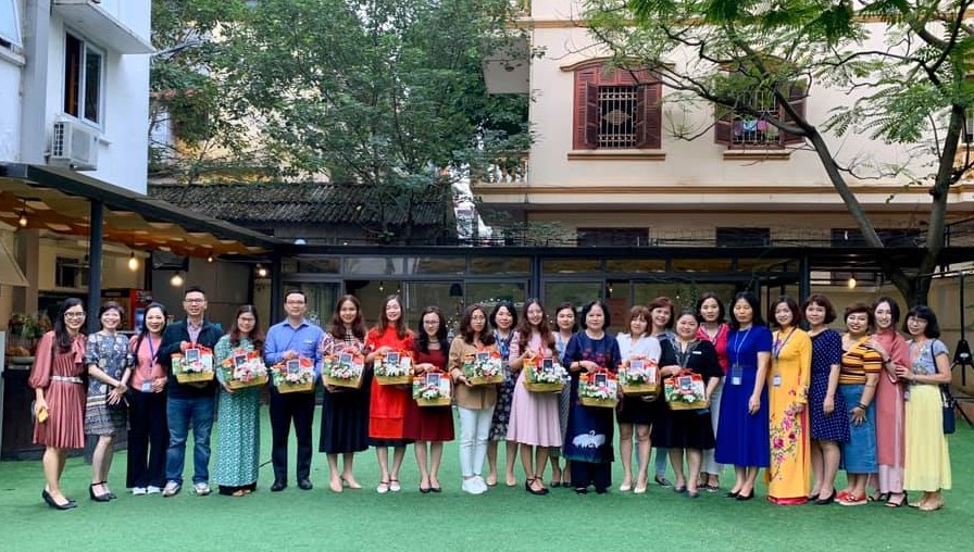 Chị Gấm Hương cùng Ban đại diện Cha mẹ học sinh tặng quà các thầy cô nhân ngày Hiến chương các Nhà giáo.