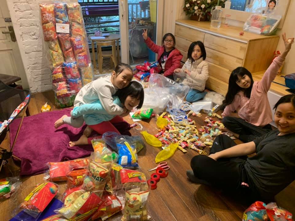 Các bạn nhỏ háo hức chuẩn bị quà tặng những người bạn mới