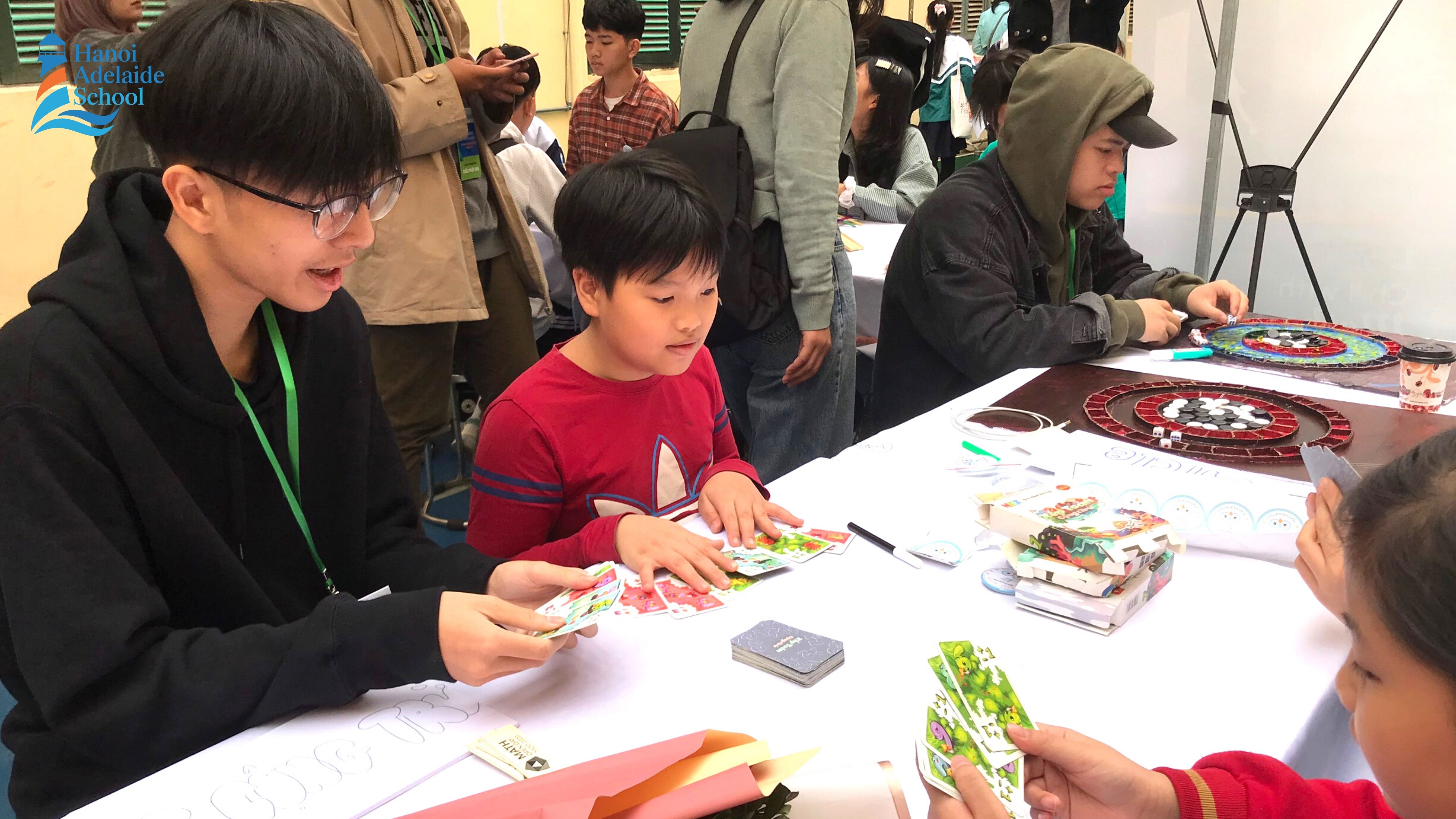 Tại Math Open Day, học sinh và thầy cô H.A.S tổ chức gian hàng “Chill with Mathematics” để cùng giao lưu, chia sẻ niềm đam mê Toán học với những người tham gia ngày hội. Những trò chơi kỳ thú như Những mảnh ghép diệu kì, Bí ẩn Italia, Sáng tạo xây dựng, v.v, được chính học sinh H.A.S tham gia xây dựng và hướng dẫn, đã góp phần không nhỏ để đem tới một ngày hội bổ ích và hứng khởi. Không chỉ thế, học sinh còn tổ chức biểu diễn thí nghiệm và trưng bày các sản phẩm Toán học, Khoa học đến với khán giả của ngày hội.