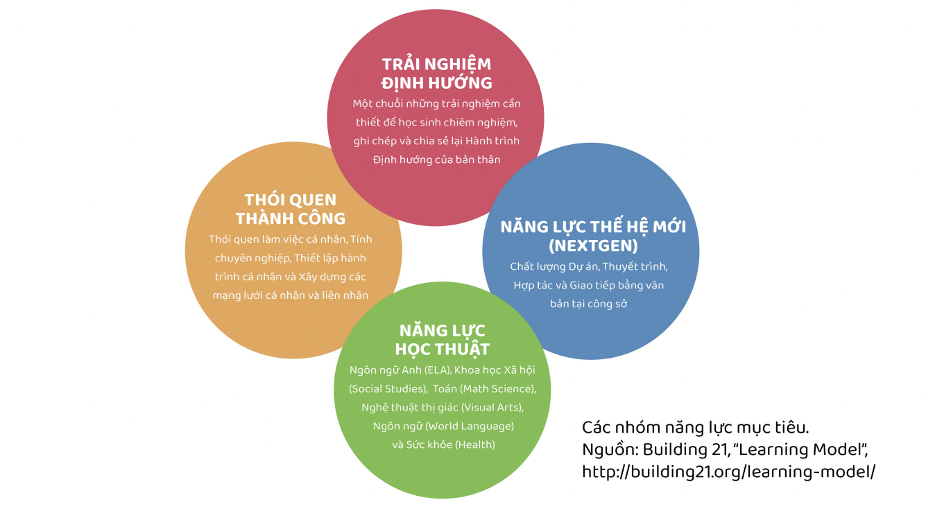 Kế thừa và phát triển khung năng lực NextGen đã và đang được sử dụng ở nhiều trường học trên khắp thế giới, Nhà trường đã hướng các mục tiêu sau tốt nghiệp cho học sinh bao gồm các năng lực học thuật, và phi học thuật; tư duy, kỹ năng và kinh nghiệm theo bốn nhóm. Mỗi nhóm bao gồm một tập hợp các năng lực, hoặc trải nghiệm mà học sinh cần hoàn thành sau khi kết thúc năm học.