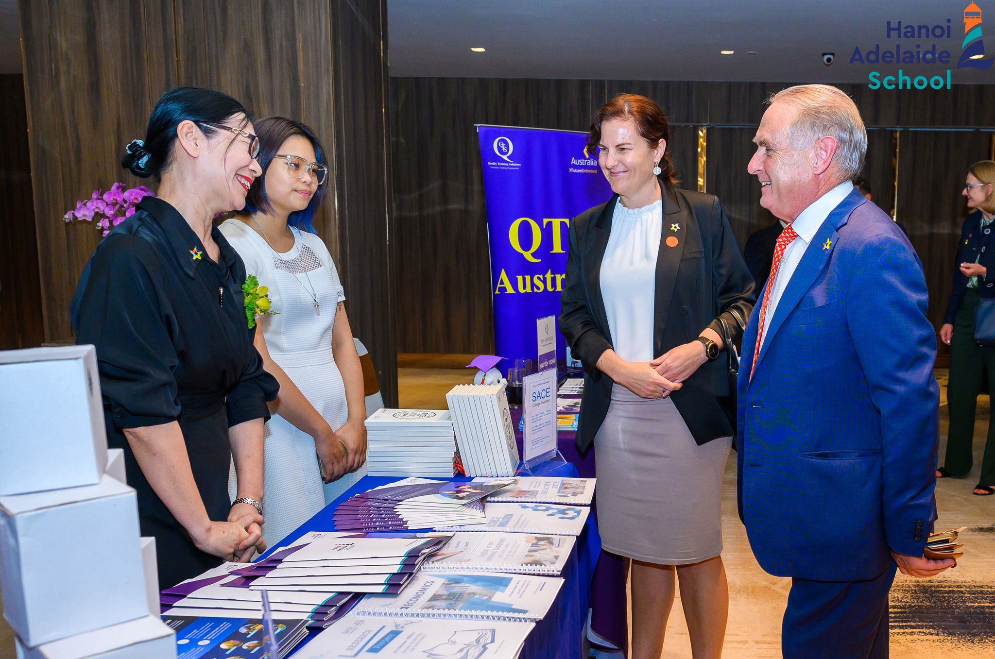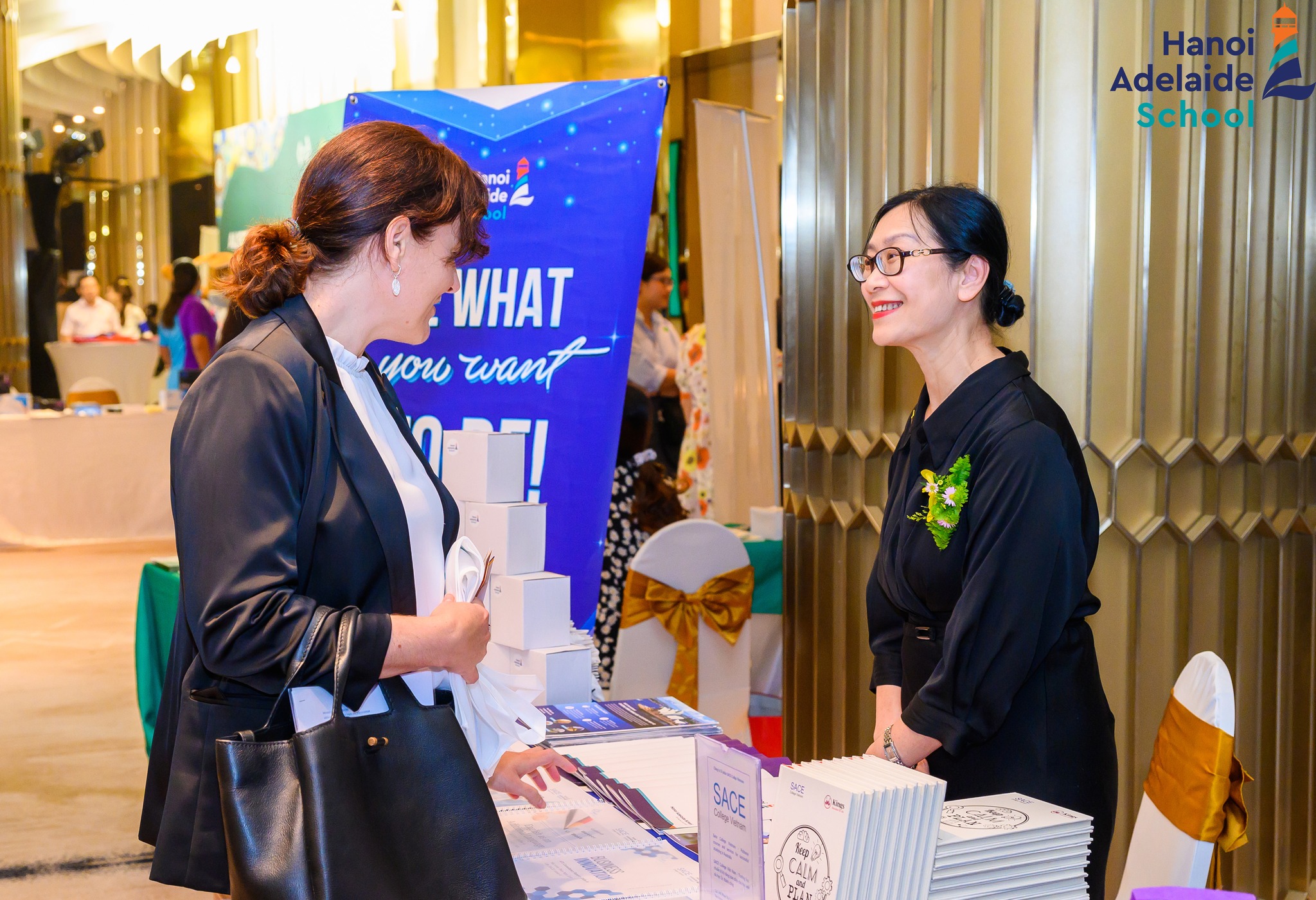 Bên cạnh đó, không gian giới thiệu về chương trình THPT Tích hợp Úc-Việt và những sản phẩm học-tập ấn tượng của học sinh Hanoi Adelaide School đã nhận được sự quan tâm của đông đảo các cựu sinh. Đặc biệt vinh dự khi gian hàng được Bộ trưởng Thương mại và Du lịch Australia, Ngài Nghị sĩ Don Farrell tham quan và giao lưu.