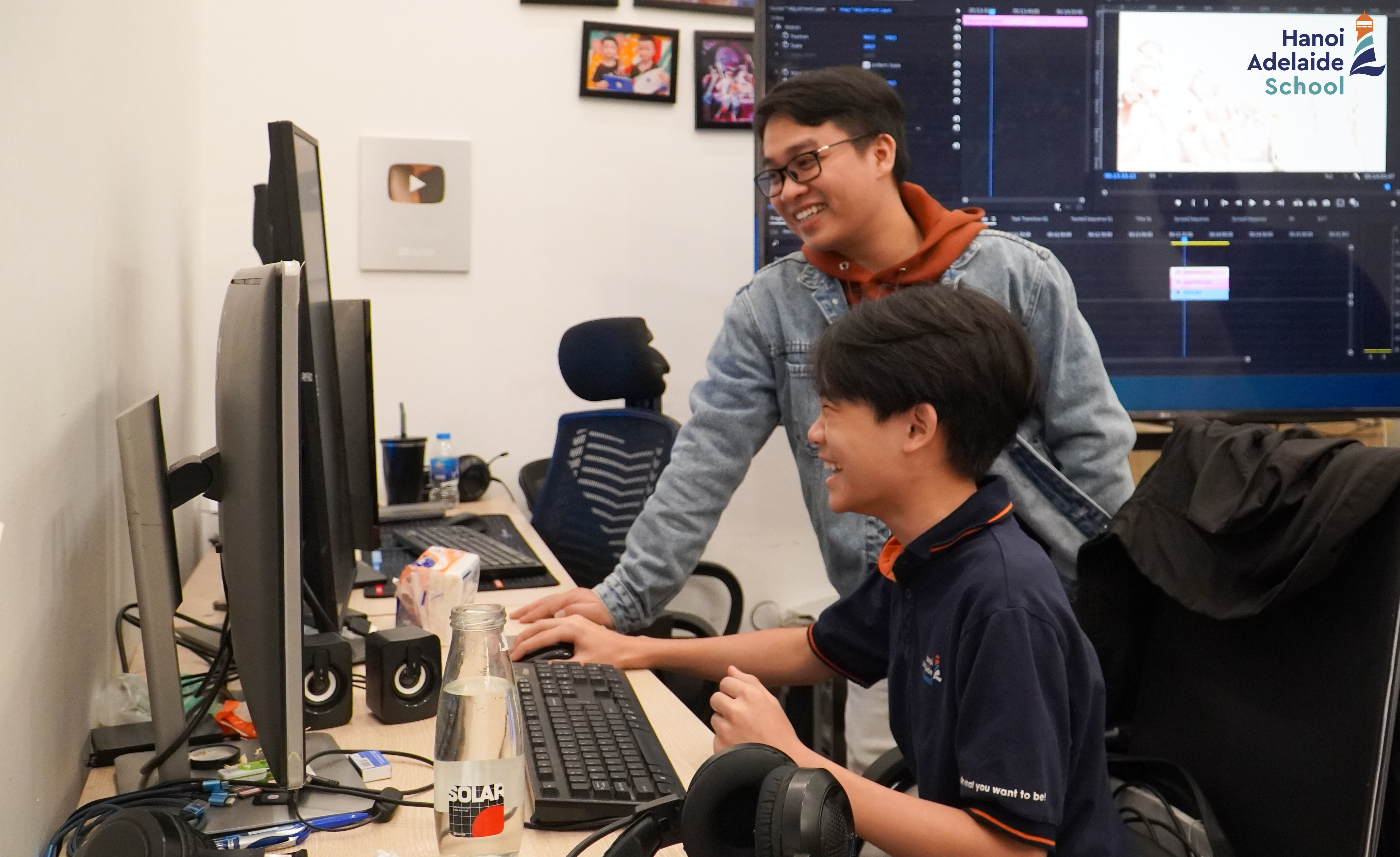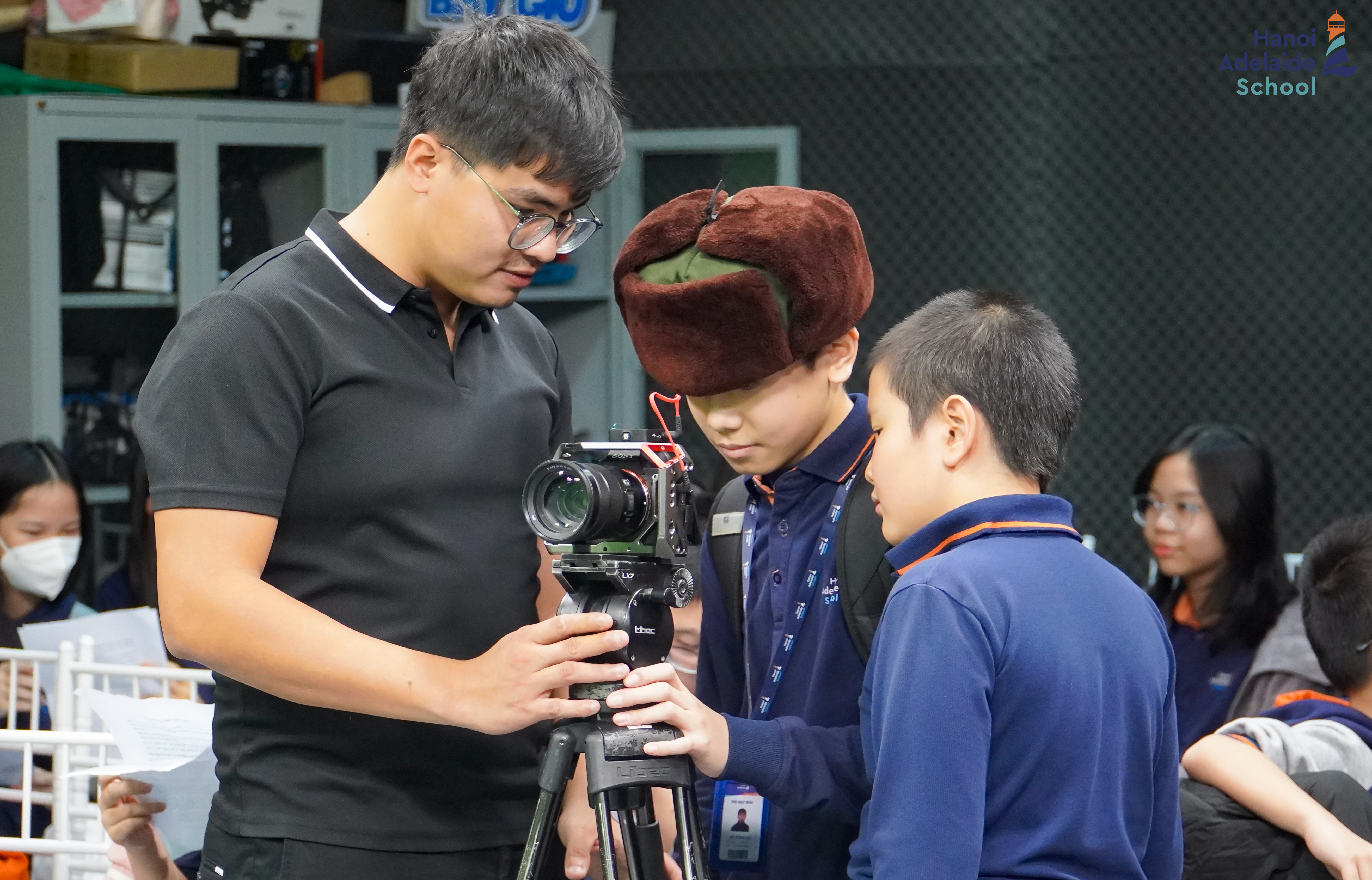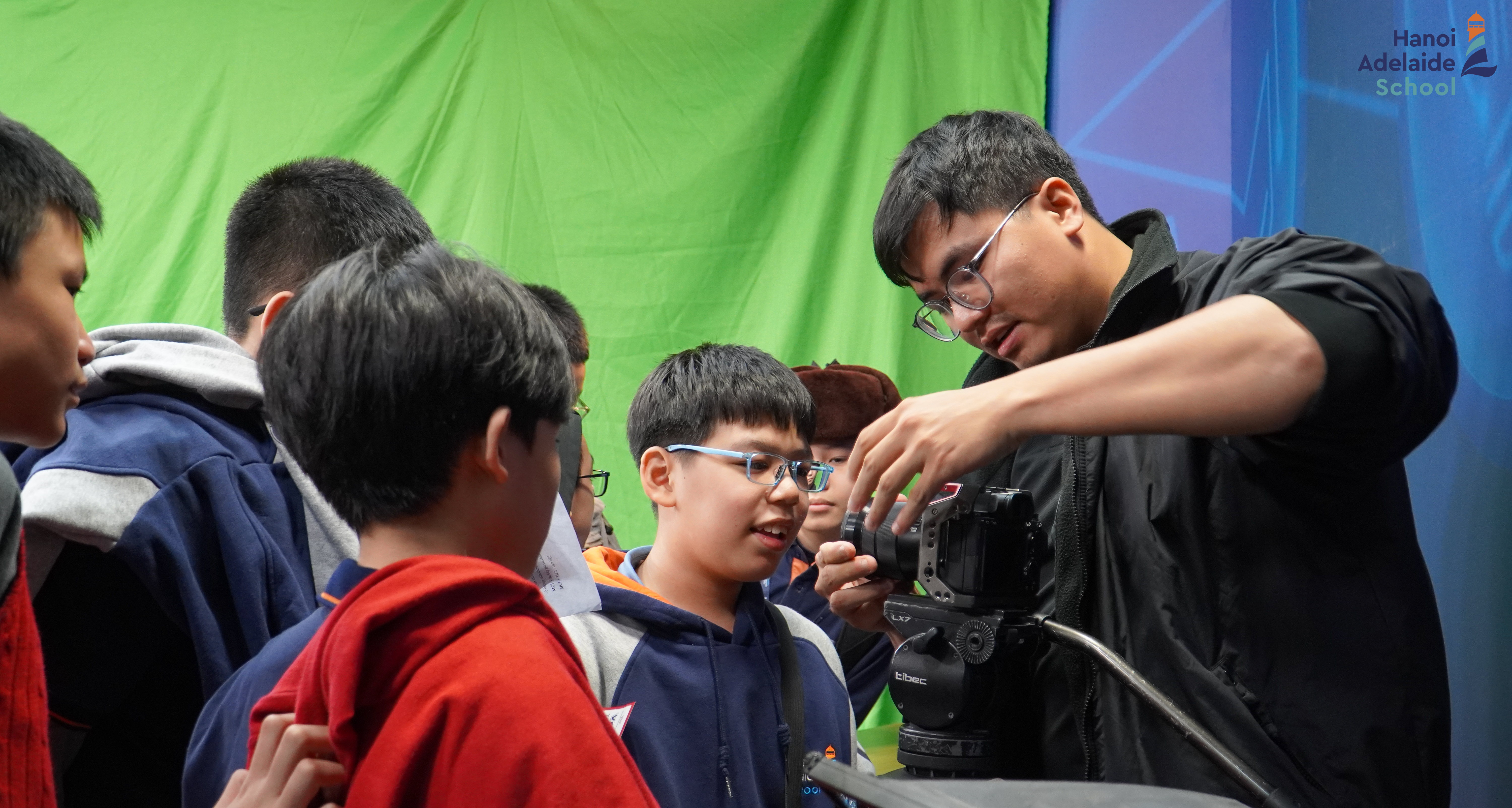 Với mong muốn giúp HASians có cái nhìn sâu sắc hơn về lĩnh vực này, các bạn học sinh Khối 7 đã có buổi trải nghiệm hướng nghiệp vô cùng thú vị tại Công ty Truyền thông và Giải trí VICGROUP. Tại đây, các bạn đã được nghe các cô chú thực chiến trong ngành chia sẻ về công việc cụ thể cùng những thách thức của nghề MC, quay phim, đạo diễn…