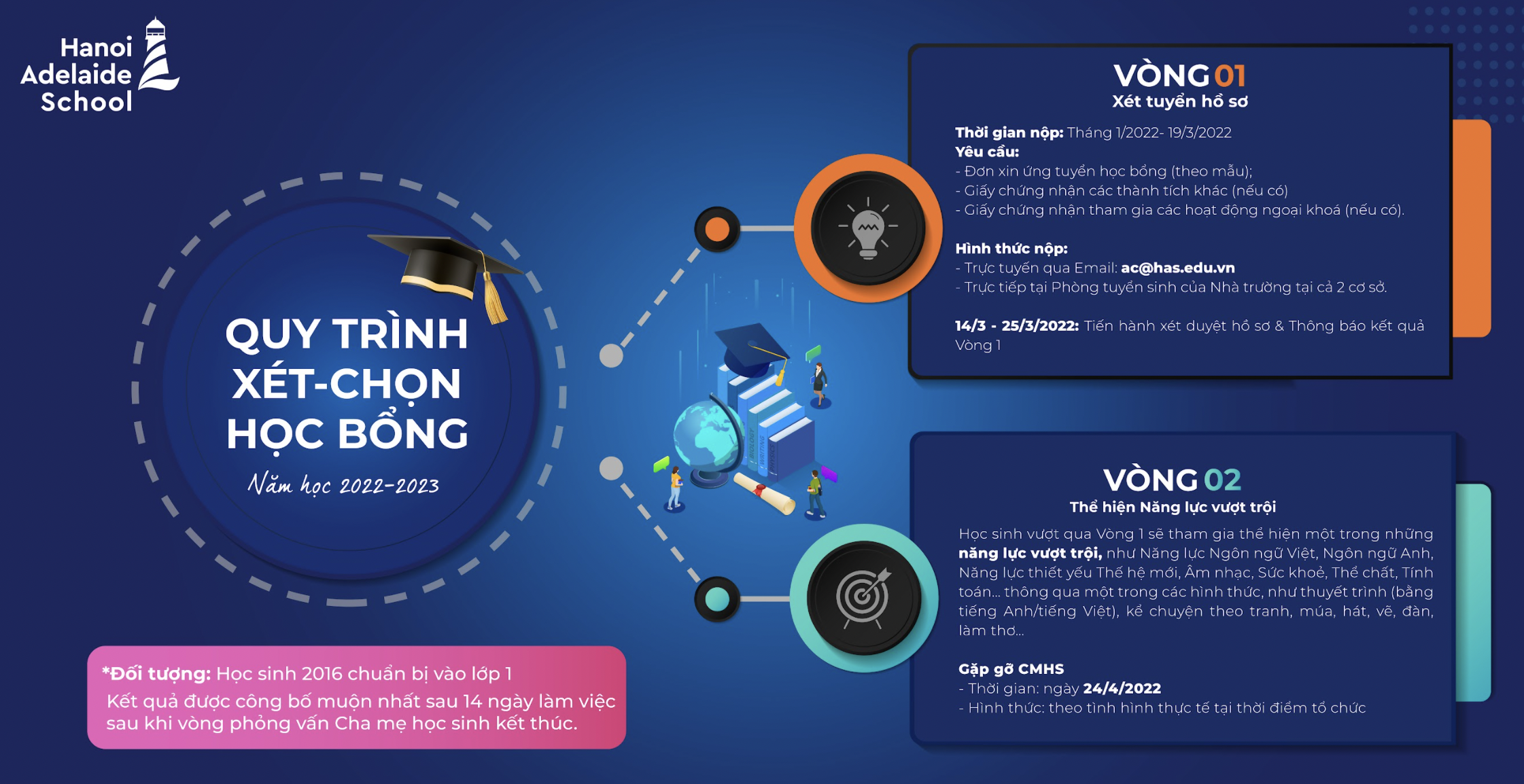 Đồng thời, với khát vọng lan toả những giá trị tích cực của Giáo dục Phát triển Năng lực và ươm mầm những thế hệ học sinh tương lai; Năm học 2022-2023, H.A.S mang tới cơ hội học-tập, trải nghiệm môi trường giáo dục, cơ sở vật chất, phương pháp dạy-học hiện đại cho học sinh trên toàn quốc qua chương trình HỌC BỔNG “H.A.S LIGHTHOUSE” với giá trị học bổng lên tới 250 triệu/năm/học sinh.