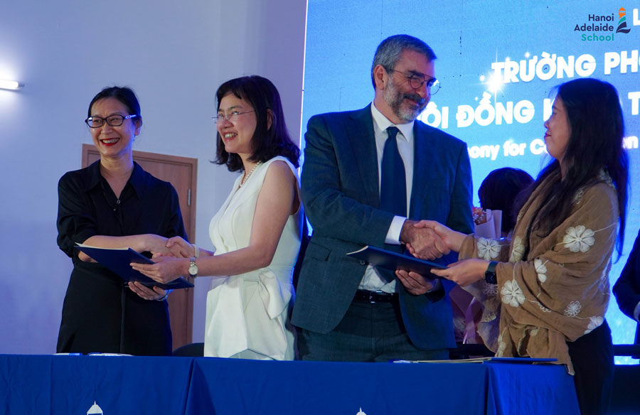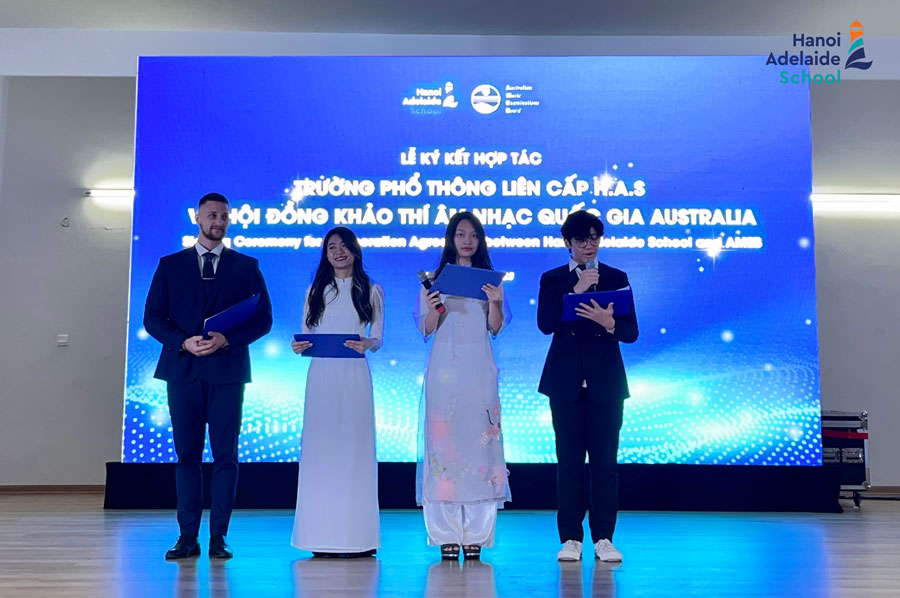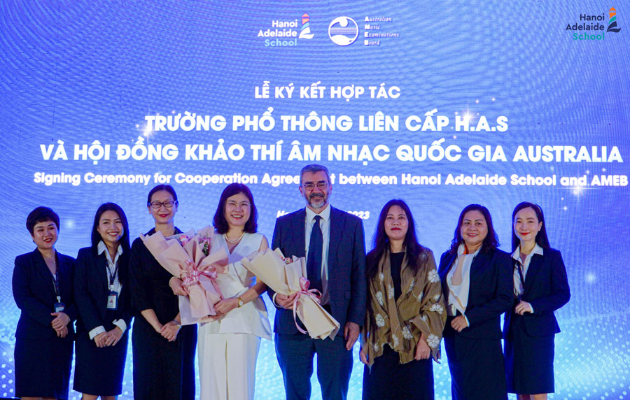 Sáng ngày 30/3/2023, lễ ký kết hợp tác giáo dục giữa Hanoi Adelaide School và Hội đồng Khảo thí Âm nhạc Quốc gia Australia (AMEB) đã diễn ra. Buổi lễ ký kết đánh dấu sự hợp tác nhằm mang đến chất lượng giáo dục hàng đầu trong lĩnh vực nghệ thuật âm nhạc cho học sinh tại Hanoi Adelaide School.