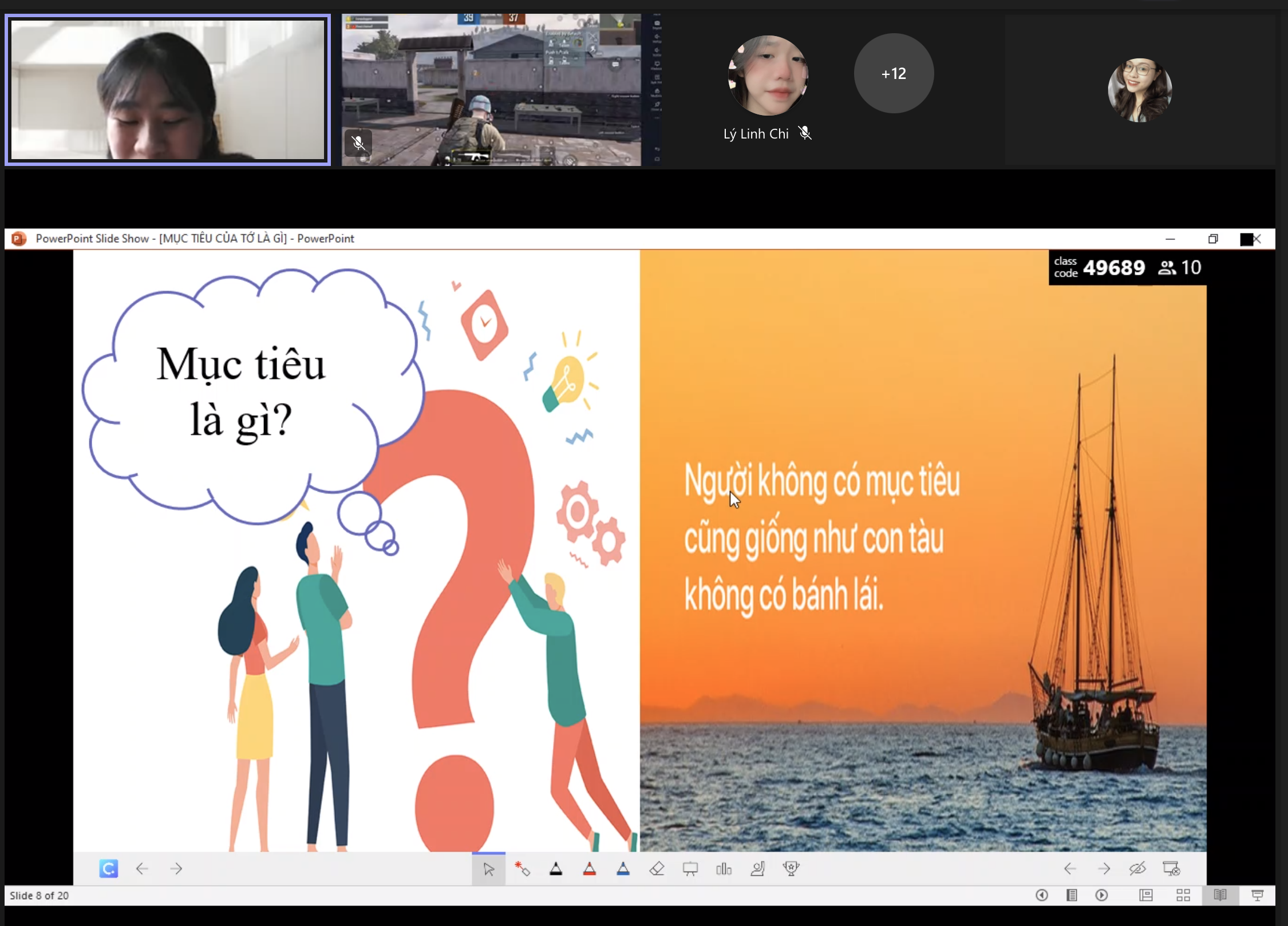 Xoay quanh chủ đề lớn: “Tớ sẽ là ai trong tương lai?”, cô và trò lớp 8A đã cùng nhau tìm hiểu khái niệm, vai trò và trình tự những bước để thiết lập mục tiêu cá nhân. Các bạn đã được làm quen và thực hành với một số khái niệm khi xây dựng mục tiêu như mục tiêu dài hạn, mục tiêu ngắn hạn, nguyên tắc SMART…