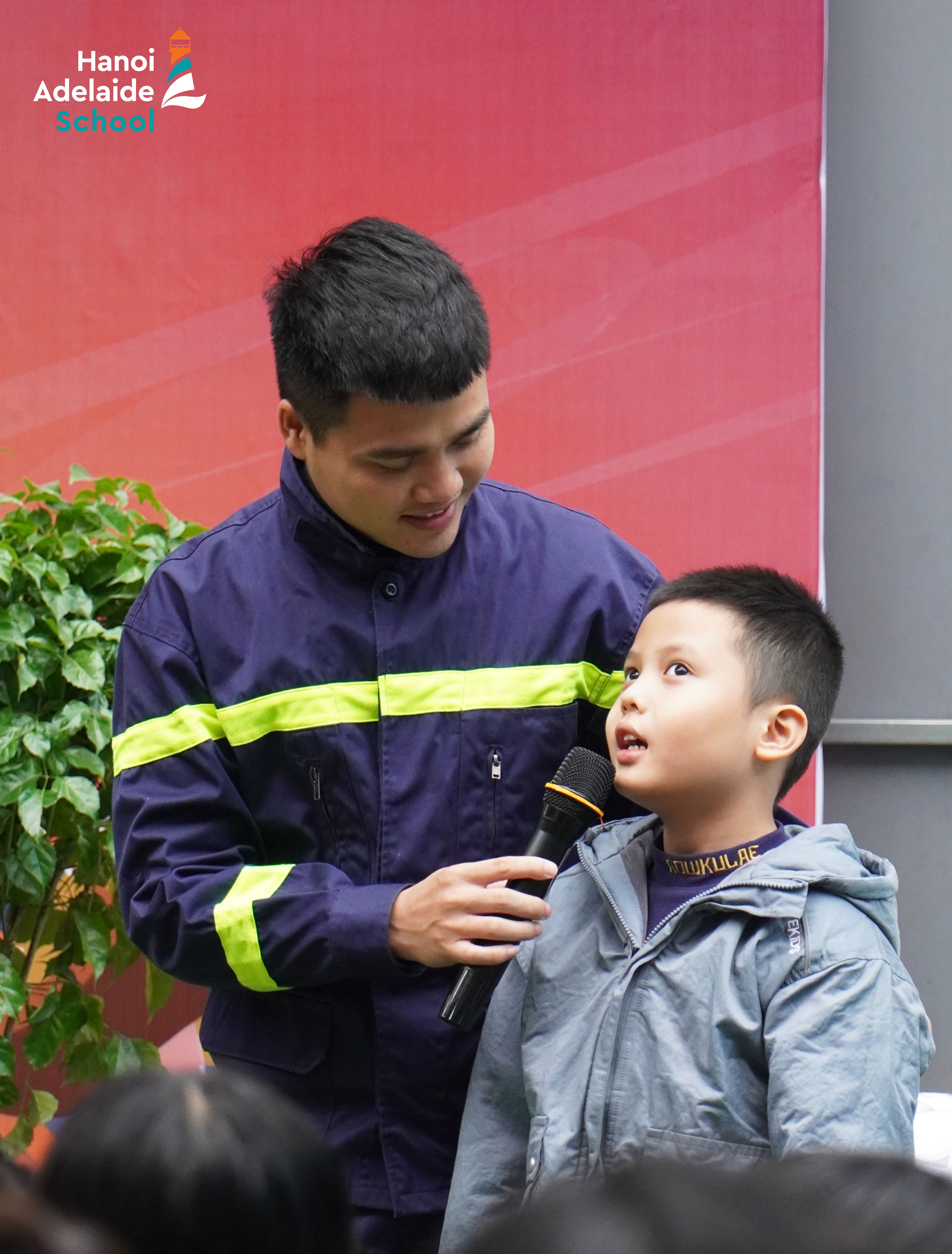 Học sinh Hanoi Adelaide school hăng hái giao lưu cùng chiến sĩ cảnh sát Phòng cháy chữa cháy