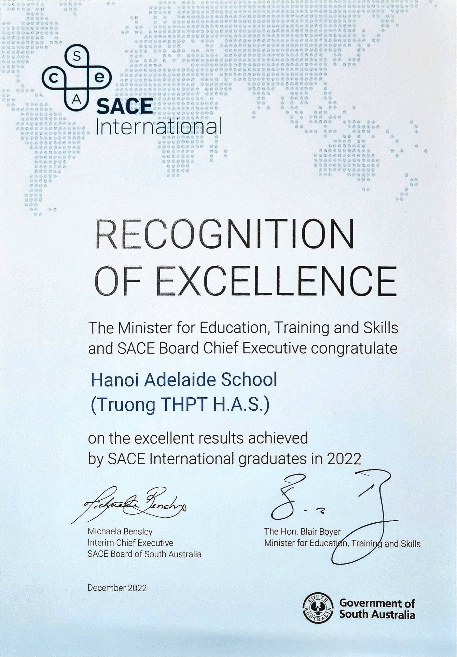 Tin vui đến với thầy và trò Hanoi Adelaide School khi vinh dự nhận bằng khen từ Ủy ban trung học Nam Úc với kết quả ấn tượng sau kỳ thi tốt nghiệp THPT Úc trên toàn thế giới.