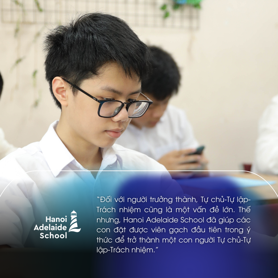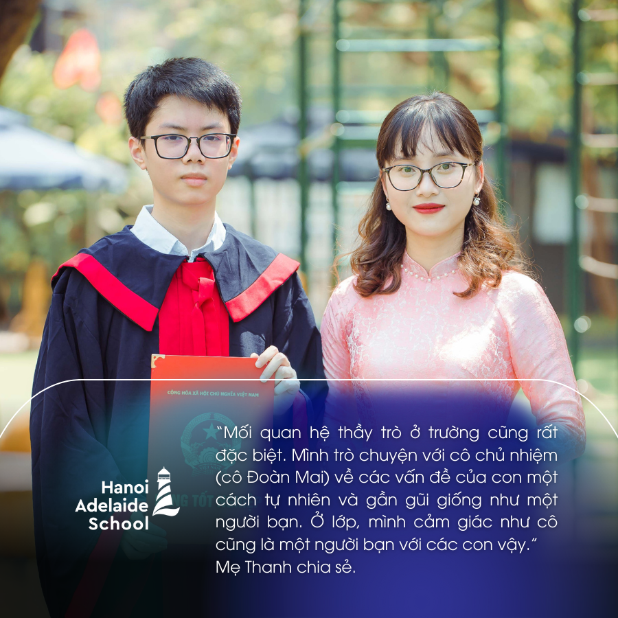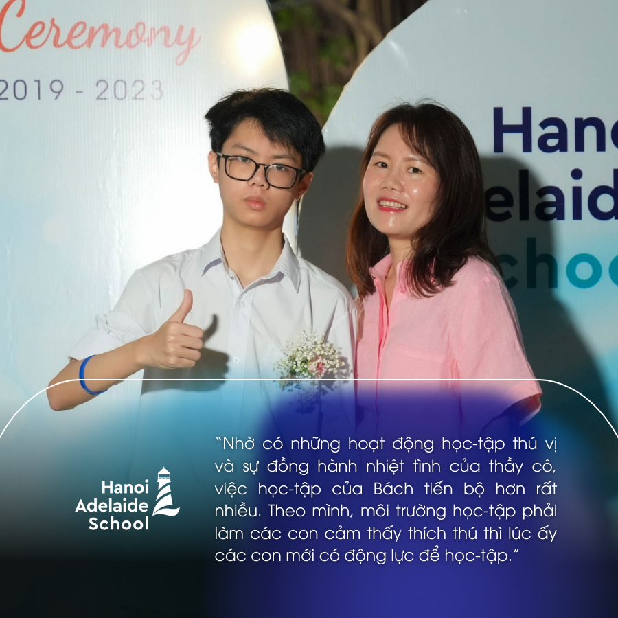 Chứng kiến sự tiến bộ và niềm vui mỗi ngày đến trường của con, mẹ Thanh càng tin tưởng hơn vào quyết định của mình và mong muốn đồng hành cùng Hanoi Adelaide School trong hành trình học-tập của Bách tại bậc THPT sắp tới.