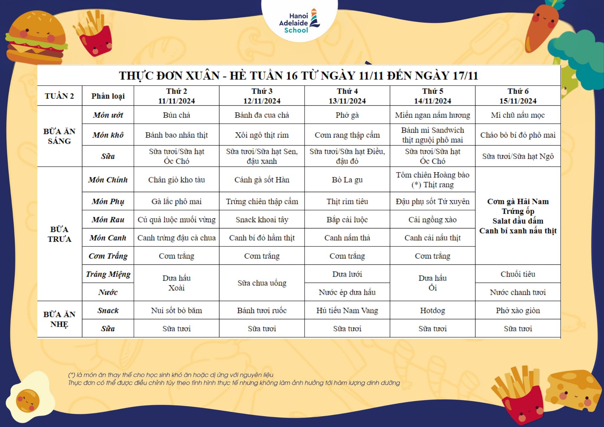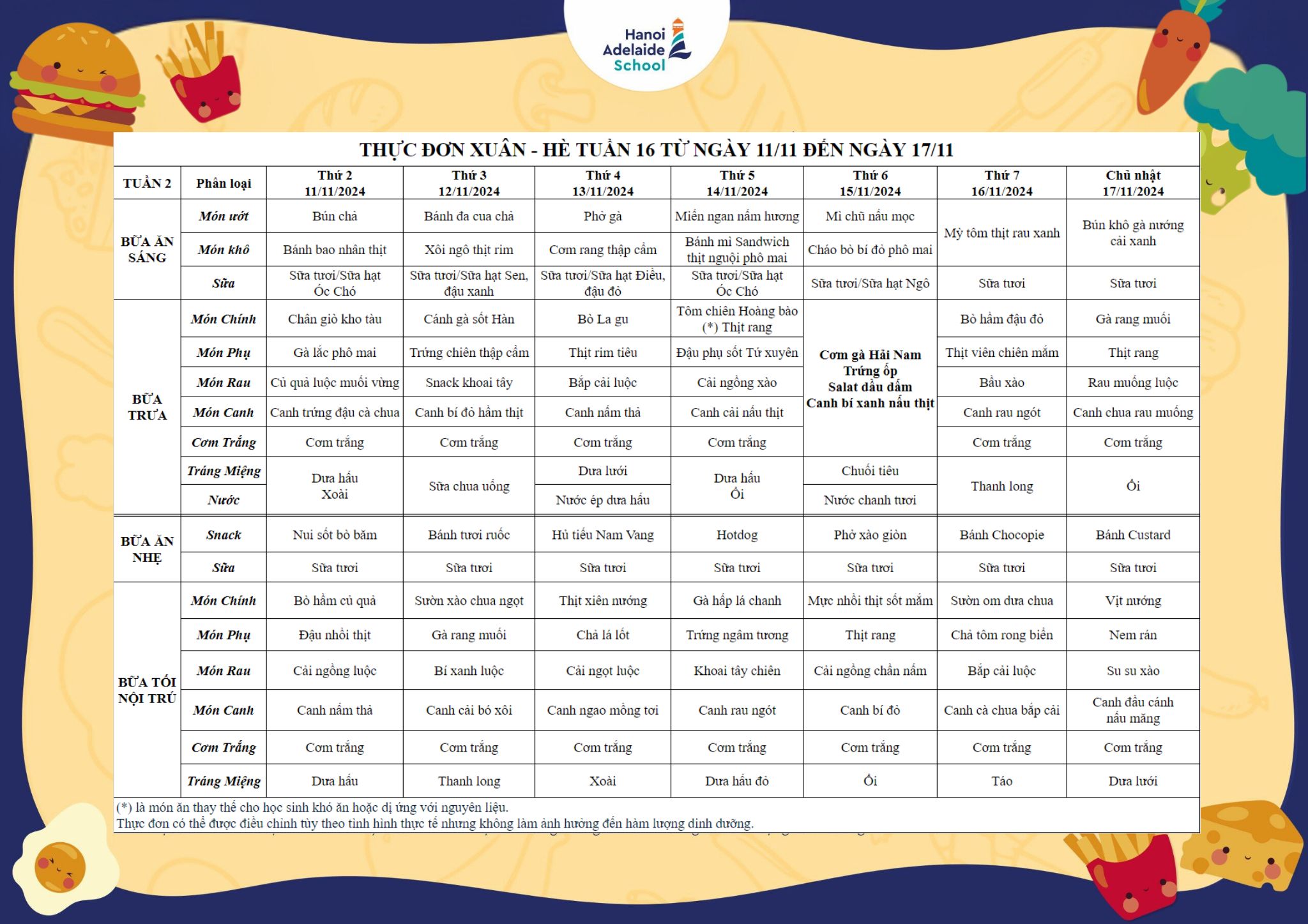 Thực đơn từ ngày 11/11/2024 đến ngày 17/11/2024