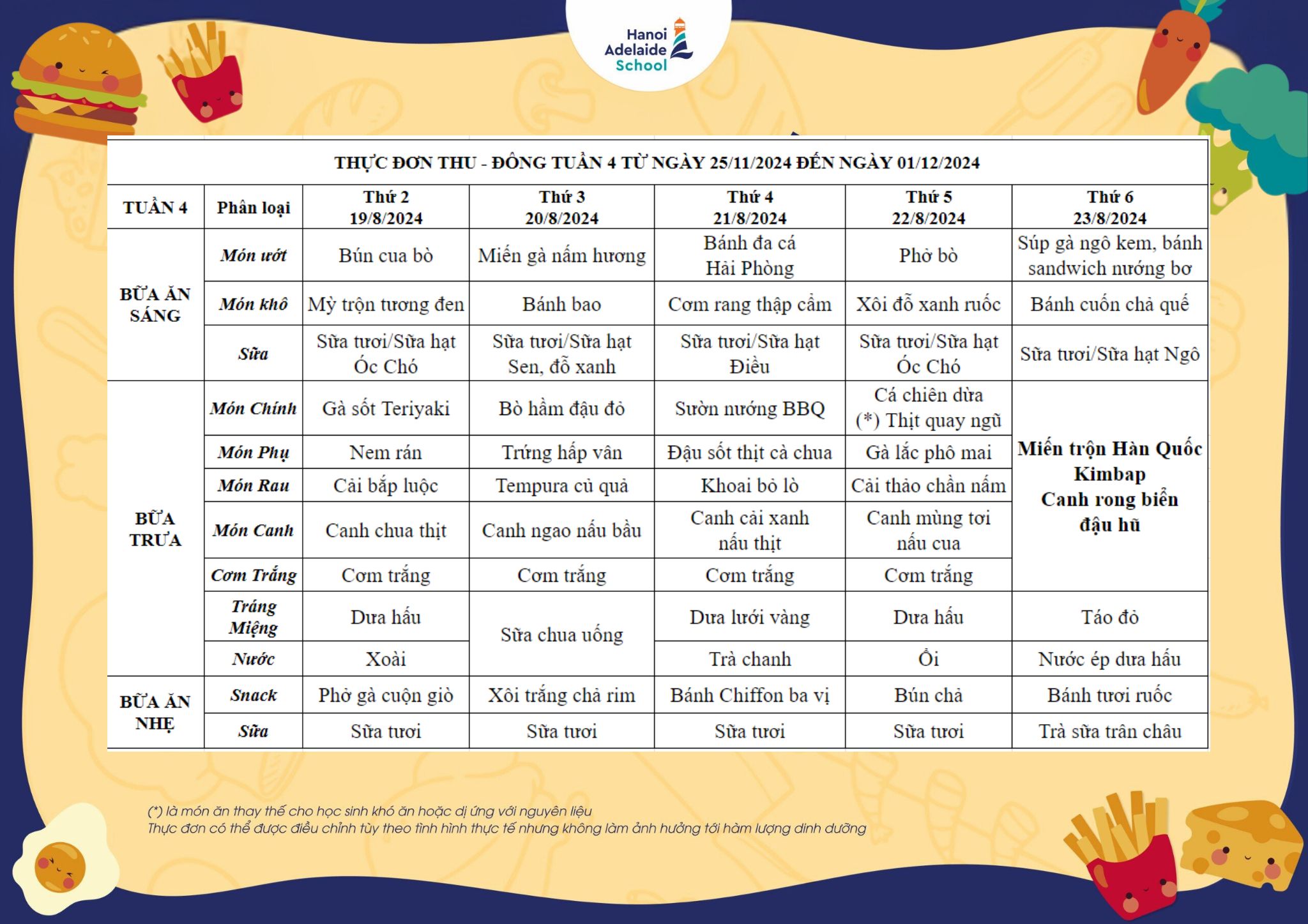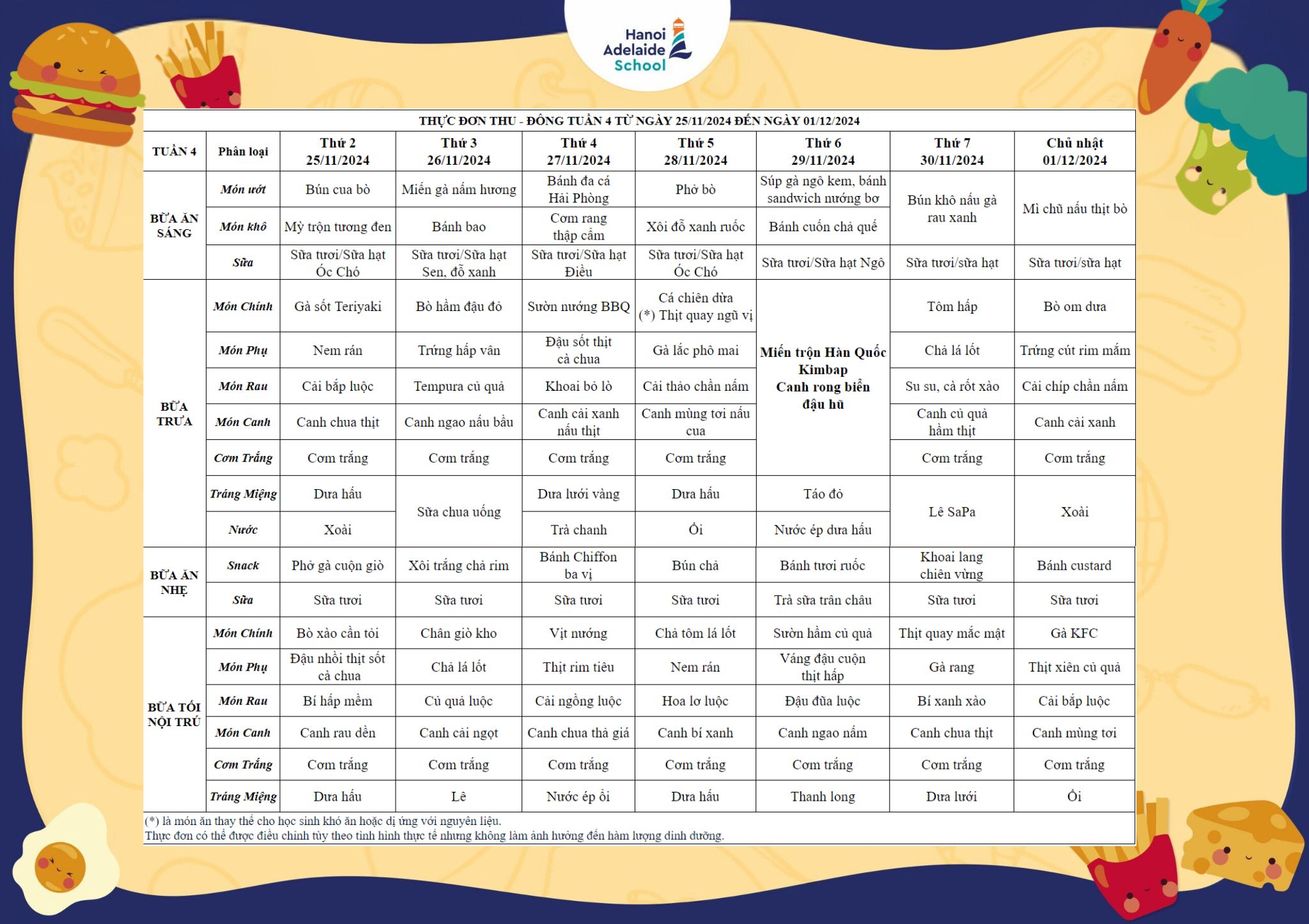 Thực đơn từ ngày 25/11/2024 đến ngày 29/11/2024